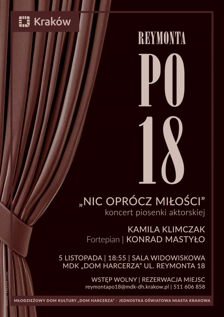Reymonta po 18 to nowy cykl wydarzeń kulturalnych w Młodzieżowym Domu Kultury „Dom Harcerza” Reymonta 18. Zapraszamy na wieczory pełne muzyki, poezji i spektakli. W programie znajdą się koncerty piosenki aktorskiej,… -