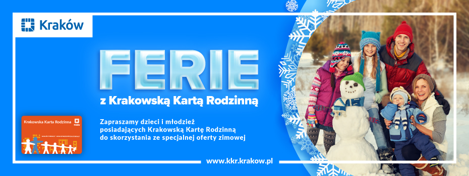 Zapraszamy dzieci i młodzież posiadające Krakowską Kartę Rodzinną do skorzystania ze specialnej oferty zimowej. Szczegółowe informacje na stronie: www.kkr.krakow.pl