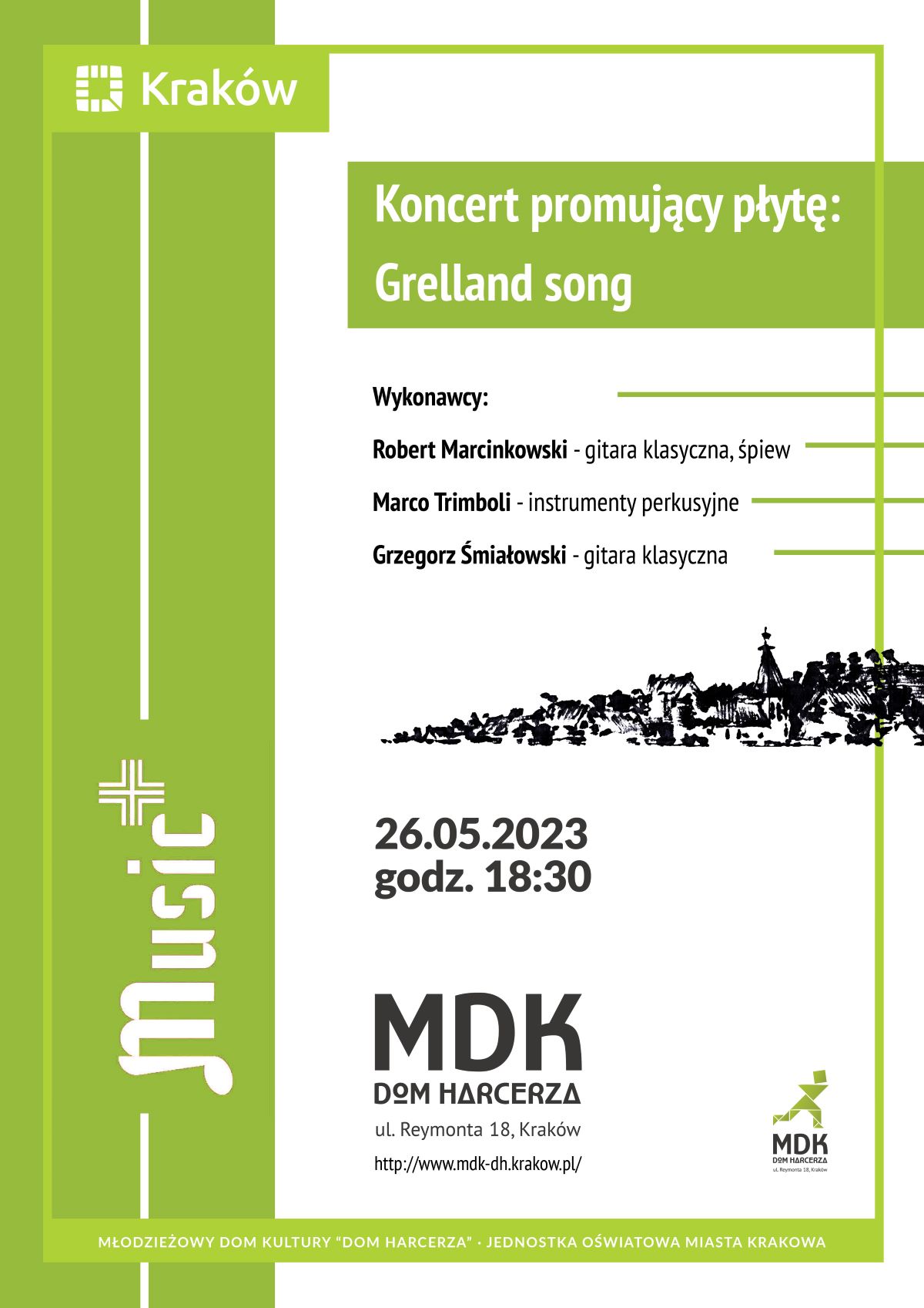 Wszystkich muzycznych pasjonatów już dziś zapraszamy na koncert promujący nową płytę zespołu „Bez Zobowiązań” Greeland Song! Koncert będzie wyjątkową okazją do spotkania z prawdziwymi wirtuozami gatunku znanego jako poezja śpiewana – Robertem Marcinkowskim, Grzegorzem Śmiałowskim i Marco Trimboli. Kunsztowne połączenie słowa i muzyki wybrzmi w niecodziennych aranżacjach zespołu „Bez zobowiązań”.