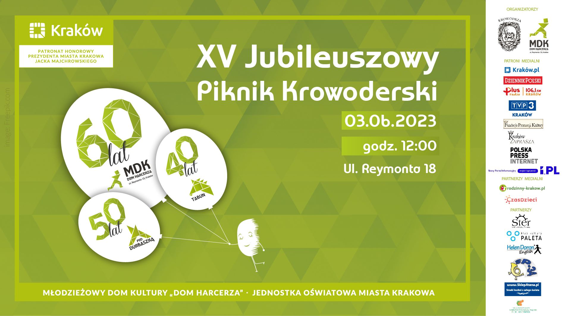 „Piknik” to wydarzenie, które dedykujemy dzieciom z Krakowa i okolic, ich rodzicom i opiekunom oraz wszystkim zainteresowanym. Tegoroczna, XV już edycja „Pikniku” będzie miała charakter jubileuszowy - jest to już piętnasta edycja tego wydarzenia, jak również 60-lecie Młodzieżowego Domu Kultury „Domu Harcerza” i 30-lecie Orkiestry Staromiejskiej. W czasie „Pikniku” odniesiemy się również do patronów roku 2023 – Jana Matejki i Aleksandra Fredry. Stąd zaplanowane konkursy plastyczne i prezentacje teatralne. „Piknik” będzie także okazją do aktywnego udziału w różnorodnych warsztatach prowadzonych na kilku stanowiskach w czasie trwania wydarzenia (m.in. plastycznych, fotograficznych, pszczelarskich). Skorzystać będzie można z przejażdżek konnych czy spróbować szczęścia w loterii z nagrodami.