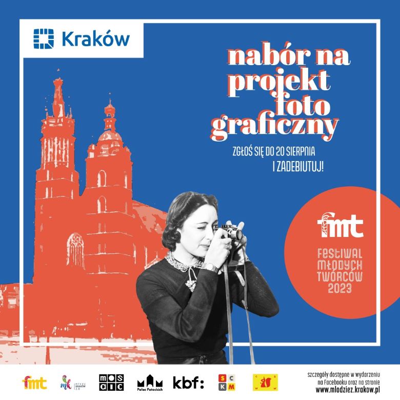 Festiwal Młodych Twórców – to czas na Twój projekt fotograficzny! Zapraszamy osoby w wieku od 13 do 26 lat mieszkające, uczące się lub pracujące w Krakowie, które tworzą w obszarze fotografii oraz fotografiki do zaprezentowania swojej twórczości na Festiwalu Młodych Twórców – Fotografia. Jeśli nie miałeś jeszcze okazji zadebiutować artystycznie, nie czekaj i wyślij swój projekt już teraz! Celem Festiwalu Młodych Twórców jest popularyzacja sztuki oraz stworzenie warunków do prezentacji oraz promocji twórczości fotograficznej krakowskiej młodzieży, w szczególności twórczości osób, które nie posiadają w dorobku artystycznym wystaw indywidualnych. Festiwalowym prezentacjom prac artystycznych będą towarzyszyć wydarzenia edukacyjne: warsztaty, wykłady czy happeningi.