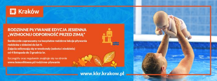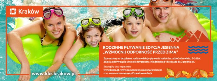 „Rodzinne pływanie” skierowane jest do krakowskich rodzin, które mogą skorzystać z bezpłatnej nauki pływania pod okiem doświadczonego instruktora. W skład jednej rodziny może wejść maksymalnie pięć osób, tj. dwoje rodziców (lub rodzic) i max. 3 dzieci (od 5 do 16 roku życia).