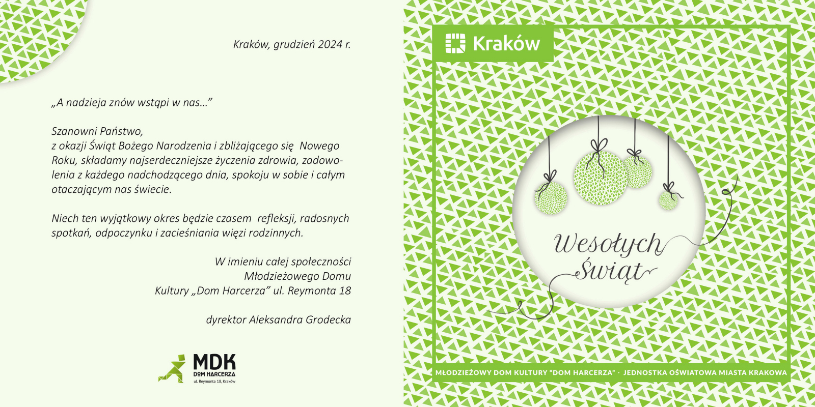 W imieniu całej społeczności Młodzieżowego Domu Kultury „Dom Harcerza” ul. Reymonta 18 dyrektor Aleksandra Grodecka.