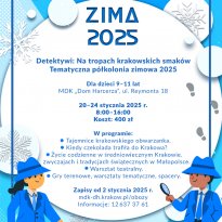 - Detektywi: Na tropach krakowskich smaków (9–11 lat) – odkrywanie kulinarnych tajemnic Krakowa.