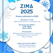 - Artystyczna Zima (10–15 lat) – kreatywne warsztaty ze sztuki i nauki.