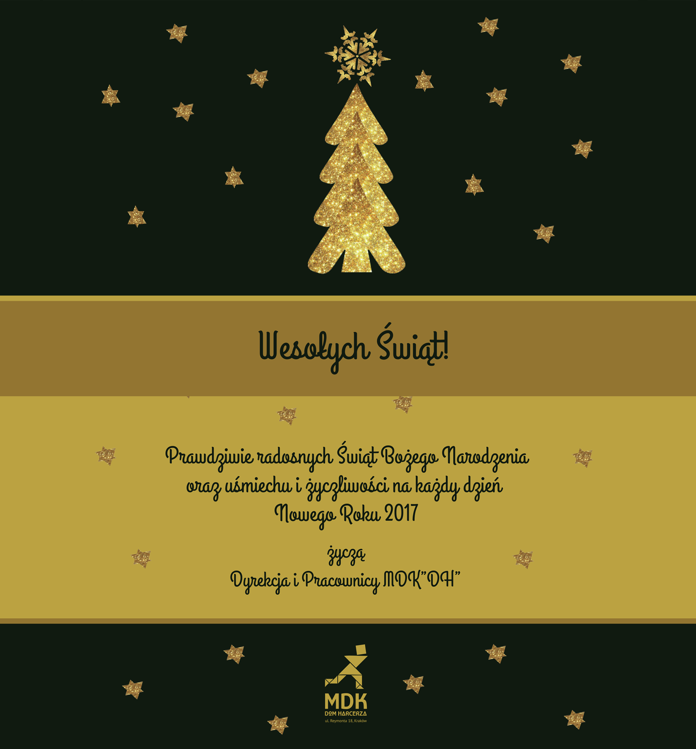 Prawdziwie radosnych Świąt Bożego Narodzenia oraz uśmiechu i życzliwości na każdy dzień Nowego Roku 2017 życzą Dyrekcja i Pracownicy MDK „Dom Harcerza”.