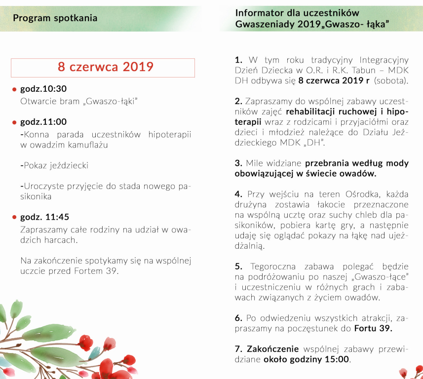 Gwaszeniada 2019 - Integracyjny Dzień Dziecka w Tabunie. Zapraszamy 8 czerwca 2019 roku o godzinie 11.00