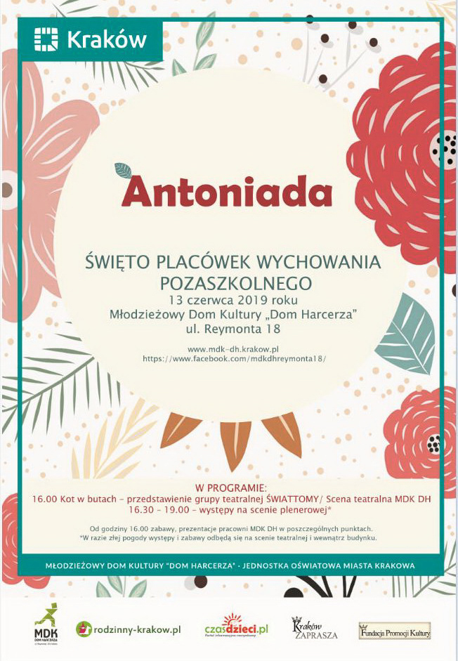 Kolejny raz uczestnicy zajęć Młodzieżowego Domu Kultury „Dom Harcerza” będą mogli zaprezentować na scenie i estradzie część bogatego dorobku całorocznego. Jest to również okazja do poznania naszej placówki przez te osoby, które jeszcze nie korzystają z naszej oferty zajęć artystycznych, sportowych, rekreacyjnych. Organizowanych w ciągu roku szkolnego oraz podczas ferii i wakacji. Zapraszamy 13 czerwca 2019 roku o godz. 16.00 do MDK "Dom Harcerza" przy ul. Reymonta 18.