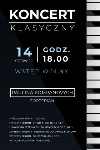 14 czerwca 2023 roku odbył się koncert fortepianowy w wykonaniu Pauliny Kompanovych.