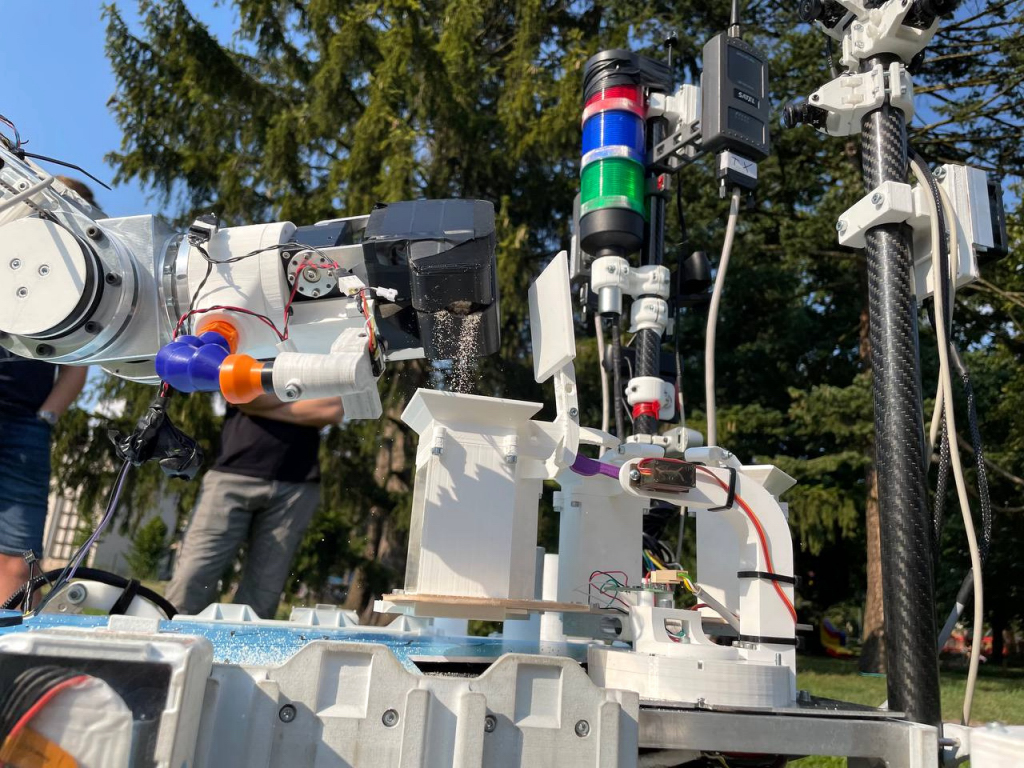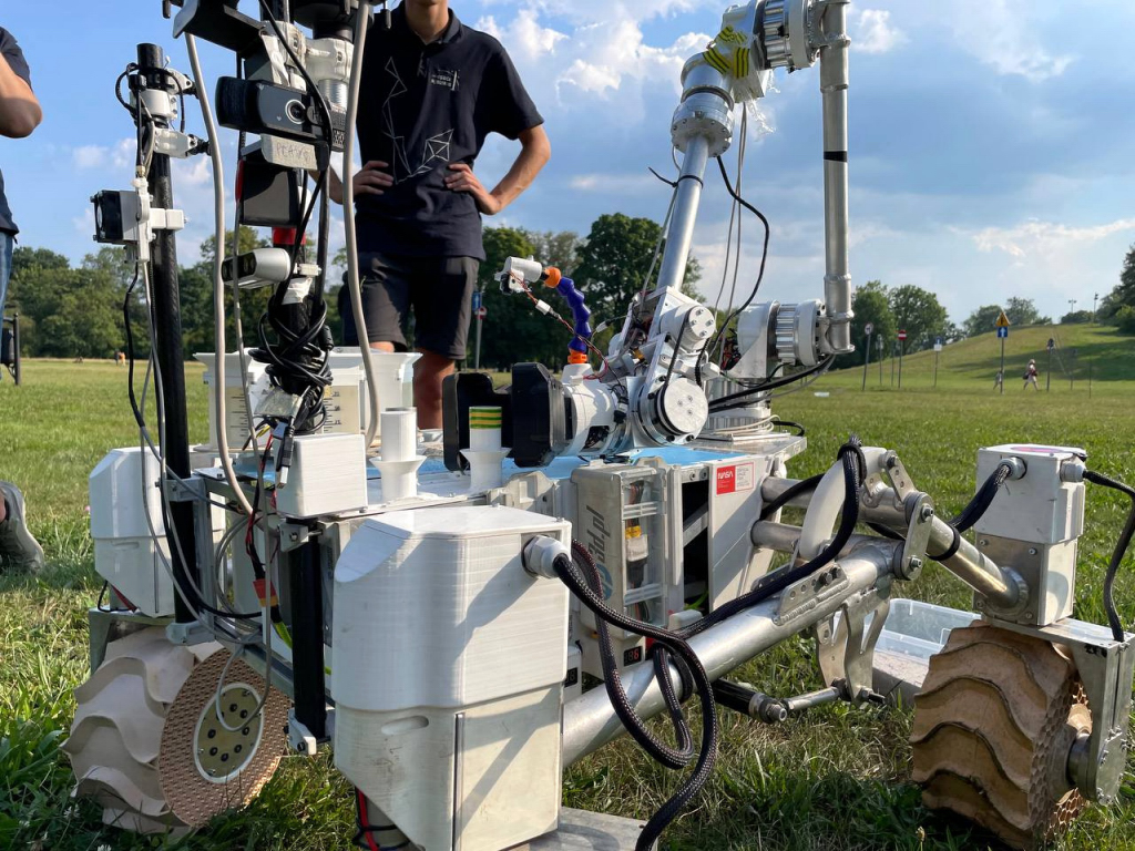 W połowie sierpnia 2022 roku mieliśmy okazję gościć zespół AGH Space Systems wraz z ich łazikiem Kalmanem. Studenci AGH przeprowadzali próbę przed European Rover Challenge 2022 - największymi zawodami łazików marsjańskich w Europie. Testowali organizacje, taktyki na konkurencje, komunikację pomiędzy stacją a robotem, sterowanie jazdą oraz stan manipulatora do pobierania próbek gleby.