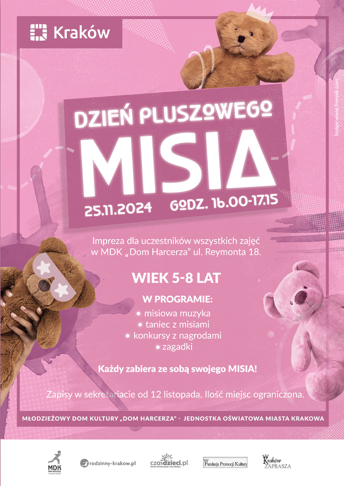 Zapraszamy uczestników wszystkich zajęć MDK na wspólne świętowanie Dnia Pluszowego Misia! Bez nazwy 1