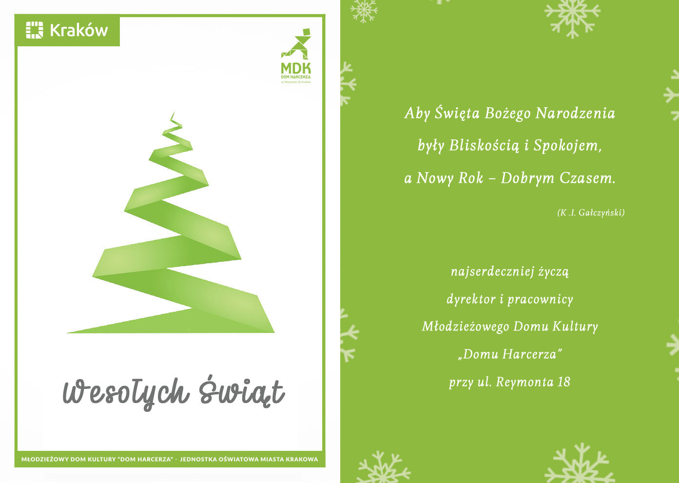 Harmonogram zajęć w MDK „Dom Harcerza" w czasie dni wolnych od zajęć szkolnych 23 do 31 grudnia