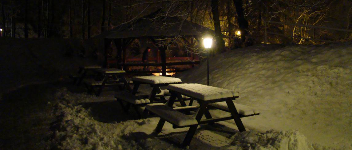 Na terenie naszego Ośrodka znajduję się zadaszona wiata z grillem. A od wiosny do jesieni można skorzystać z dwóch dużych namiotów, każdy z nich pomieści ok 50 osób.