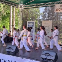 Pokaz dzieci z Klubu Karate MDK „DH" na Pikniku Krowoderskim (3 czerwca 2023 roku) oraz egzamin na kolejne stopnie szkoleniowe kyu dzieci i młodzieży (12 czerwca 2023 roku). Shihan Andrzej Drewniak, Sensei Artur Steki.