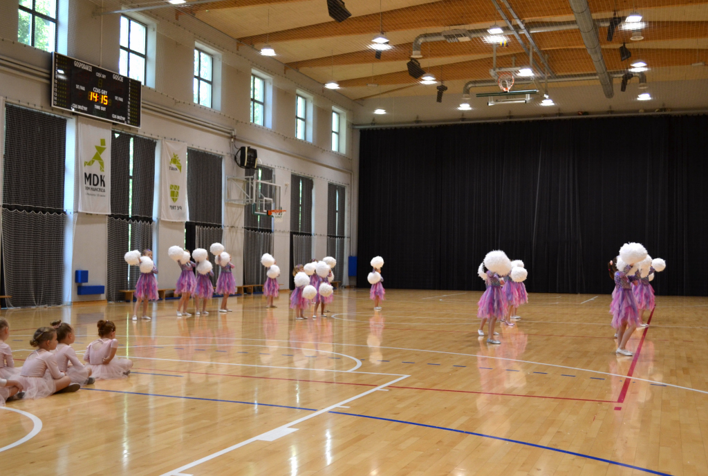 Relacja fotograficzna z pokazu tańca kreatywnego i towarzyskiego - Małe Cheerleaderki. Pokaz dla rodziców odbył się 8 czerwca na zakończenie roku szkolnego 2023/24. Były owacje nagrody i dyplomy.