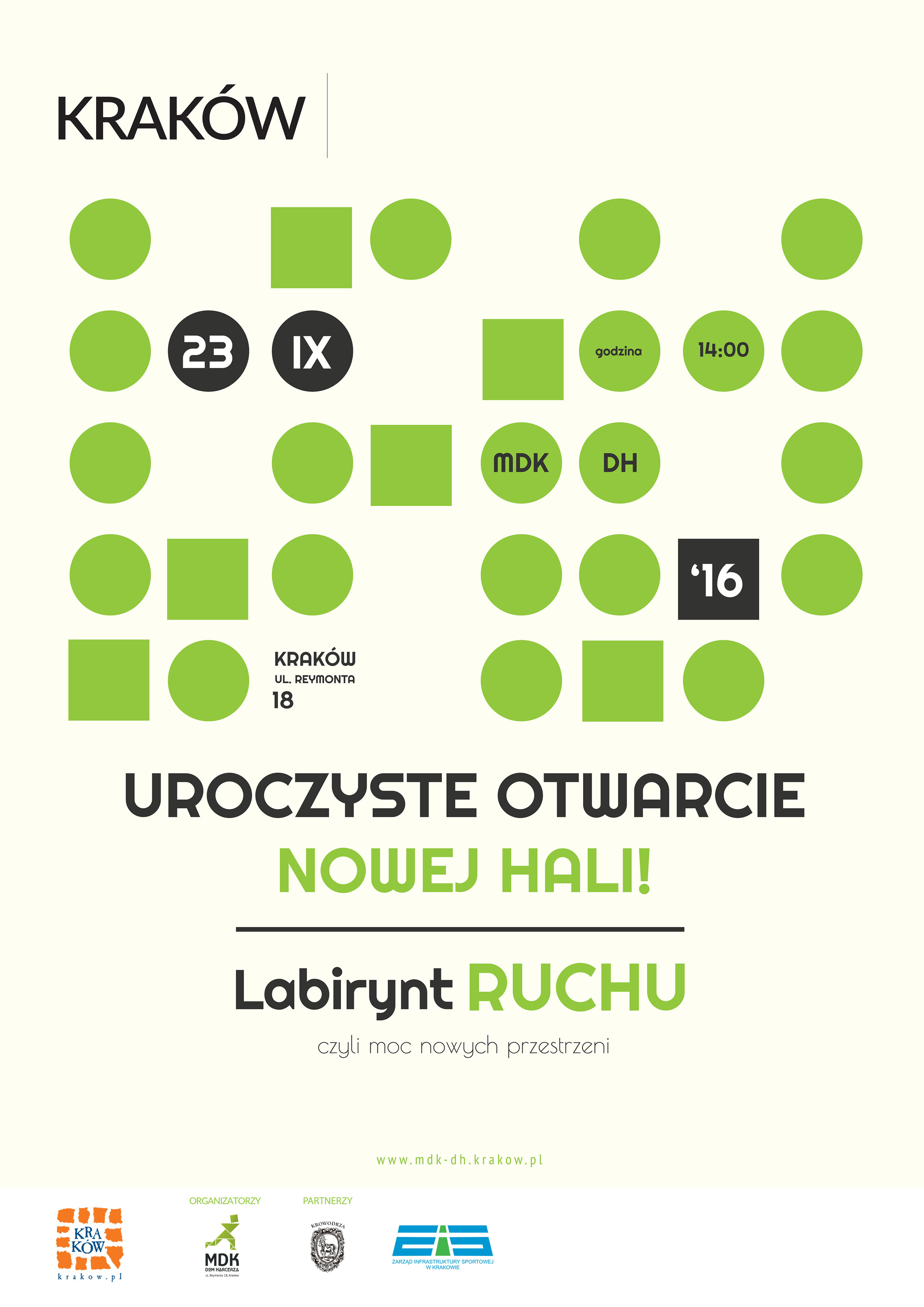 MDK „Dom Harcerza” od wielu lat rozwija swoją działalność wzbogacając program dla uczestników i doskonaląc organizację i warunki działania. Budynek przy ul. Reymonta 18, pochodzący z 1938 roku i zbudowany jako prewentorium dla chorych dzieci, w coraz mniejszym stopniu odpowiadał wymaganiom systemu nowoczesnych zajęć pozaszkolnych. Współpraca ze środowiskiem i okolicznymi szkołami pozwoliła na prowadzenie zajęć m.in. na szkolnych salach gimnastycznych. Były to lata, w których niektóre pracownie MDK działały w rozproszeniu. W takich warunkach zrodził się projekt budowy hali sportowej spełniającej przy okazji warunki do organizacji wydarzeń artystycznych. Starania, rozmowy, przekonywanie władz miasta, przyjmowanie uchwał przez Radę Miasta, zdobywanie sojuszników trwało ponad 10 lat. Przed wakacjami 2015 roku rozpoczęła się budowa. I właśnie teraz, we wrześniu 2016 roku, świętujemy sukces. Otwarcia sali dokonamy podczas sportowo-rekreacyjnej imprezy „Labirynt Ruchu” 23.09.2016 r. Poza przysłowiowym „przecięciem wstęgi” impreza będzie przede wszystkim dobrą zabawą dla uczestników i przyjaciół MDK. Pokazy, występy artystyczne, a przede wszystkim gra pozwalająca doświadczyć zajęć w MDK. I na to serdecznie zapraszamy.