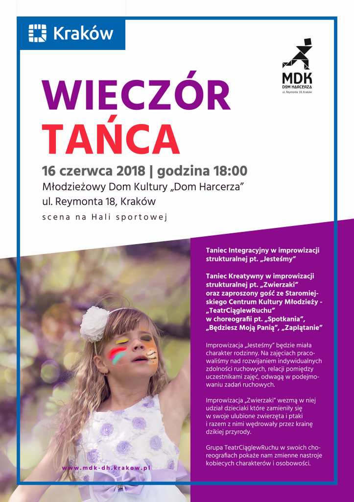 16 czerwca 2018 roku odbył się „Wieczór Tańca” pracowni Tańca Kreatywnego. Przedstawienie miało miejsce w Hali Sportowej MDK „Dom Harcerza”.