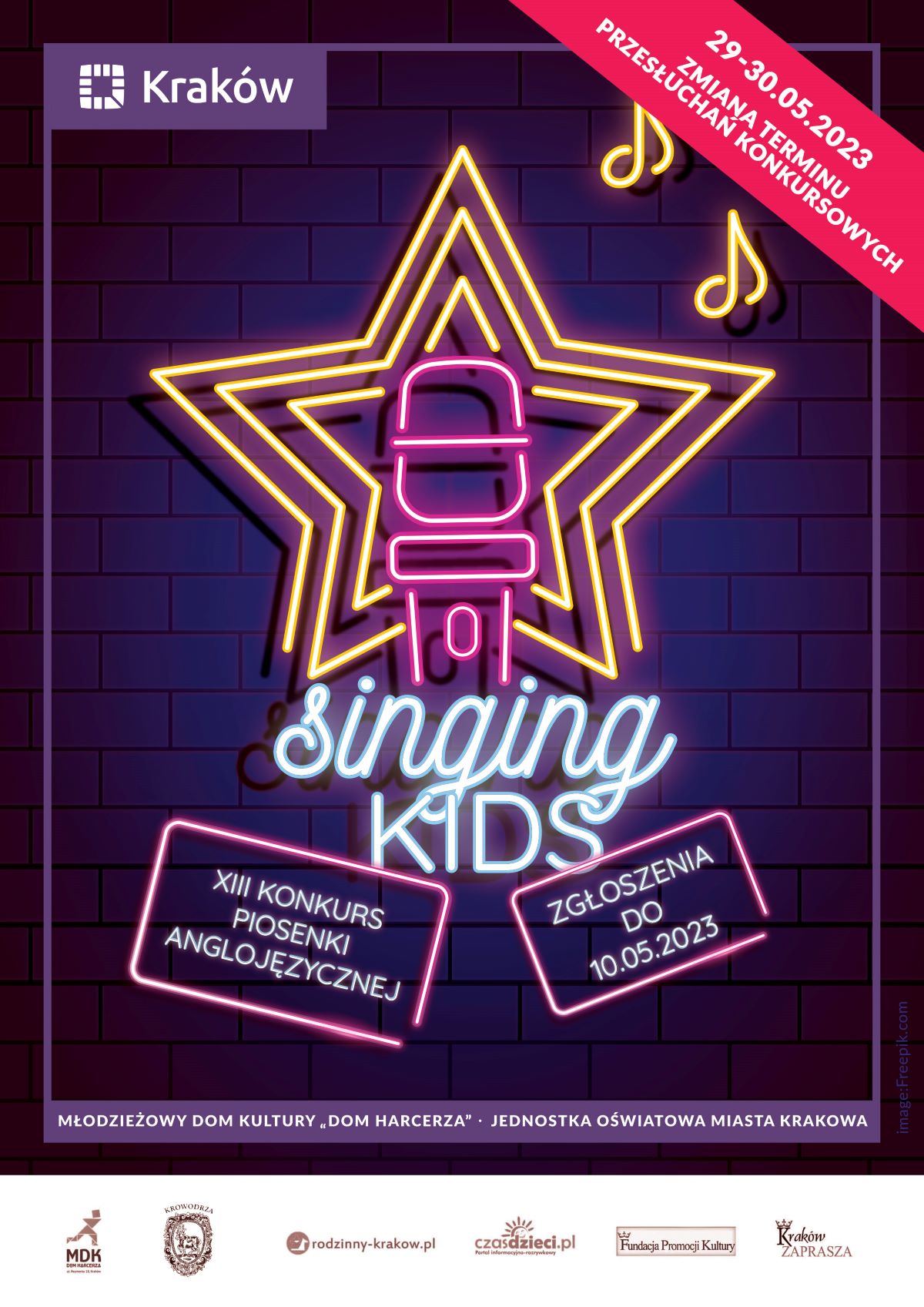 Serdecznie zapraszamy do udziału w kolejnej edycji Konkursu Piosenki Anglojęzycznej "Singing Kids". Konkurs przeznaczony jest dla uczniów szkół podstawowych i średnich. Uczestnikami konkursu mogą być dzieci i młodzież w wieku od 7 do 19 lat (podzieleni są na grupy wiekowe). W każdej grupie wiekowej wyróżnione są dwie kategorie – soliści i zespoły. Warunkiem uczestnictwa jest zaśpiewanie jednej piosenki w języku angielskim. Szczegółowe informacje oraz karty zgłoszeń w regulaminie konkursu.
