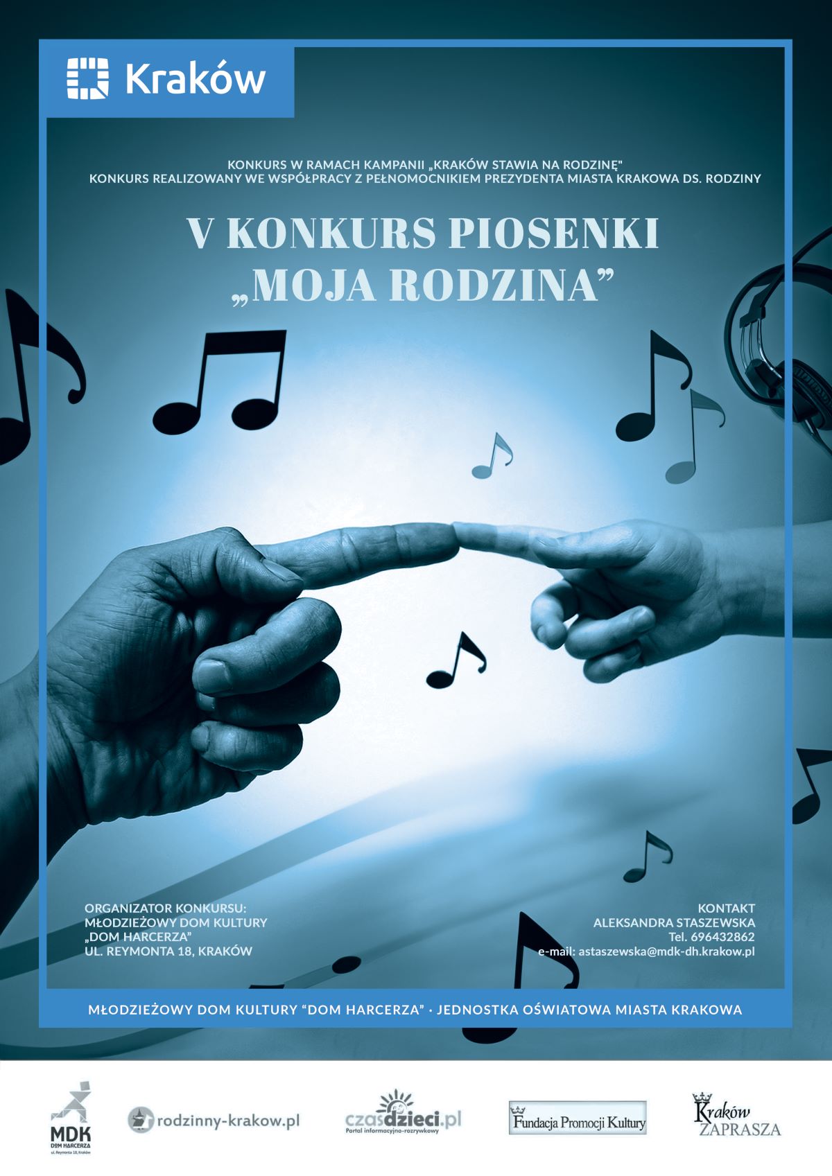 Serdecznie zapraszamy do udziału w konkursie "Moja Rodzina". Współorganizatorem konkursu jest Pełnomocnik Prezydenta Krakowa ds. Rodziny. W konkursie mogą brać udział dzieci w wieku od lat 4 do 9. Celem konkursu jest wykonanie pracy plastycznej ukazującej Rodzinę oczami dziecka. Szczegółowe informacje i zasady udziału w konkursie znajdują się w regulaminie.