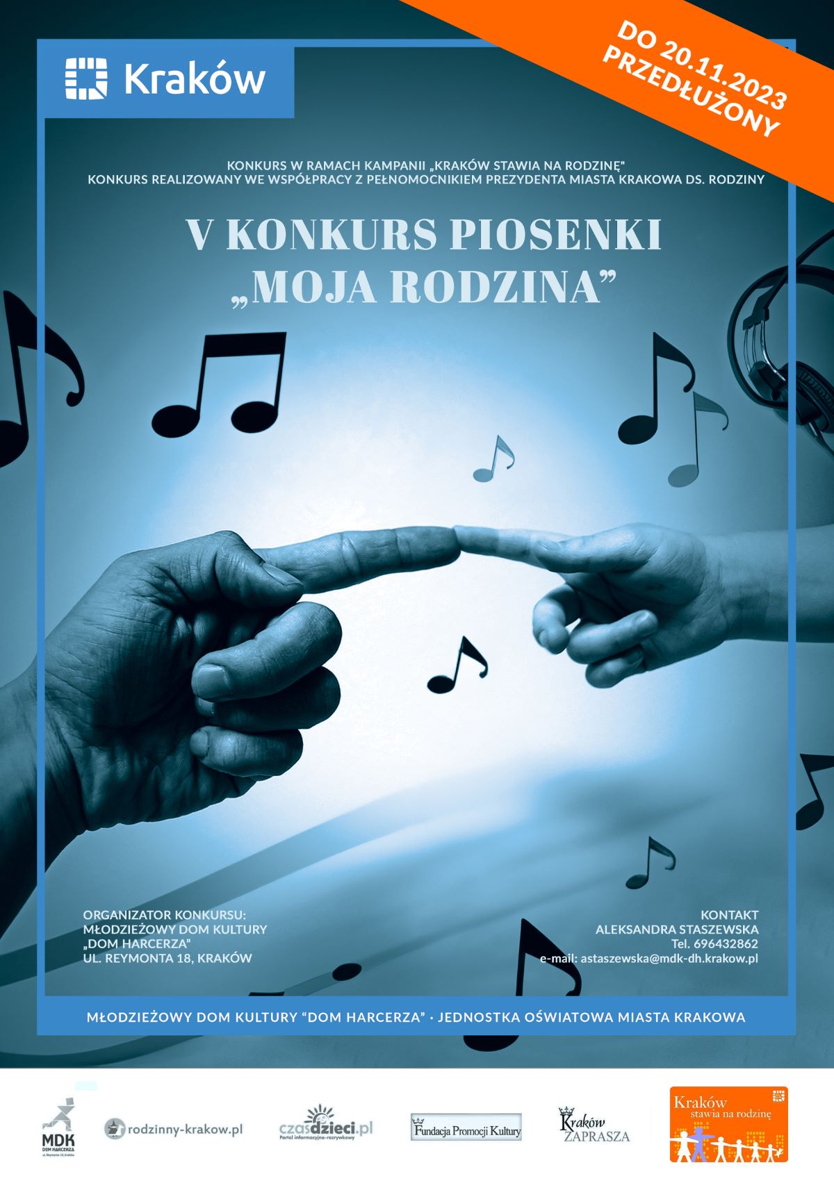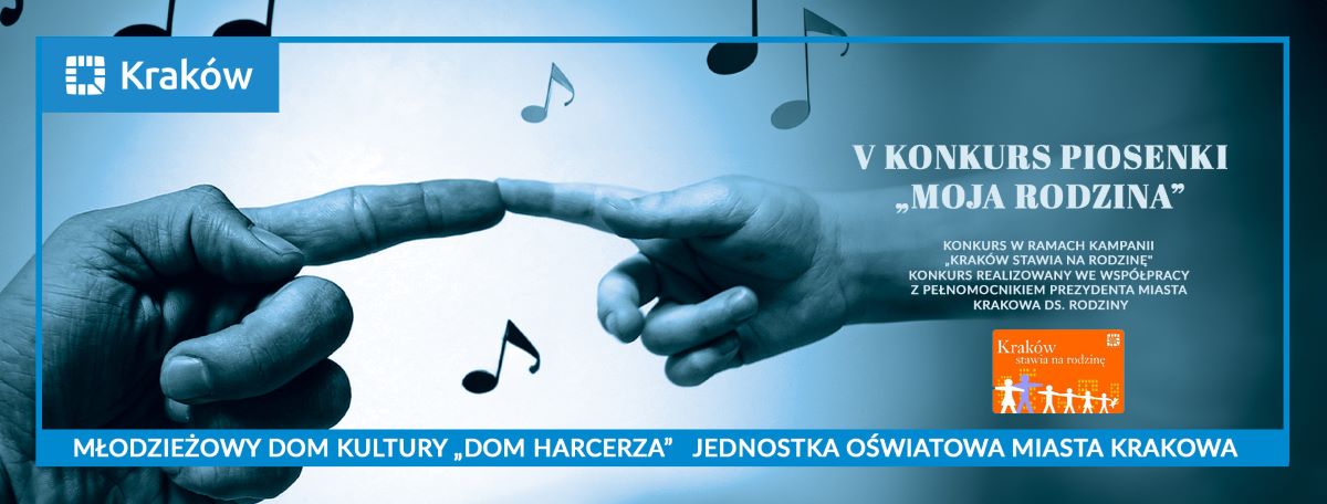 Z wielką przyjemnością informujemy o V Konkursie Piosenki pod hasłem „Moja Rodzina", który odbędzie się w Młodzieżowym Domu Kultury „Dom Harcerza" przy ul. Reymonta 18. Konkurs jest współorganizowany przez Pełnomocnika Prezydenta Miasta Krakowa ds. Rodziny.