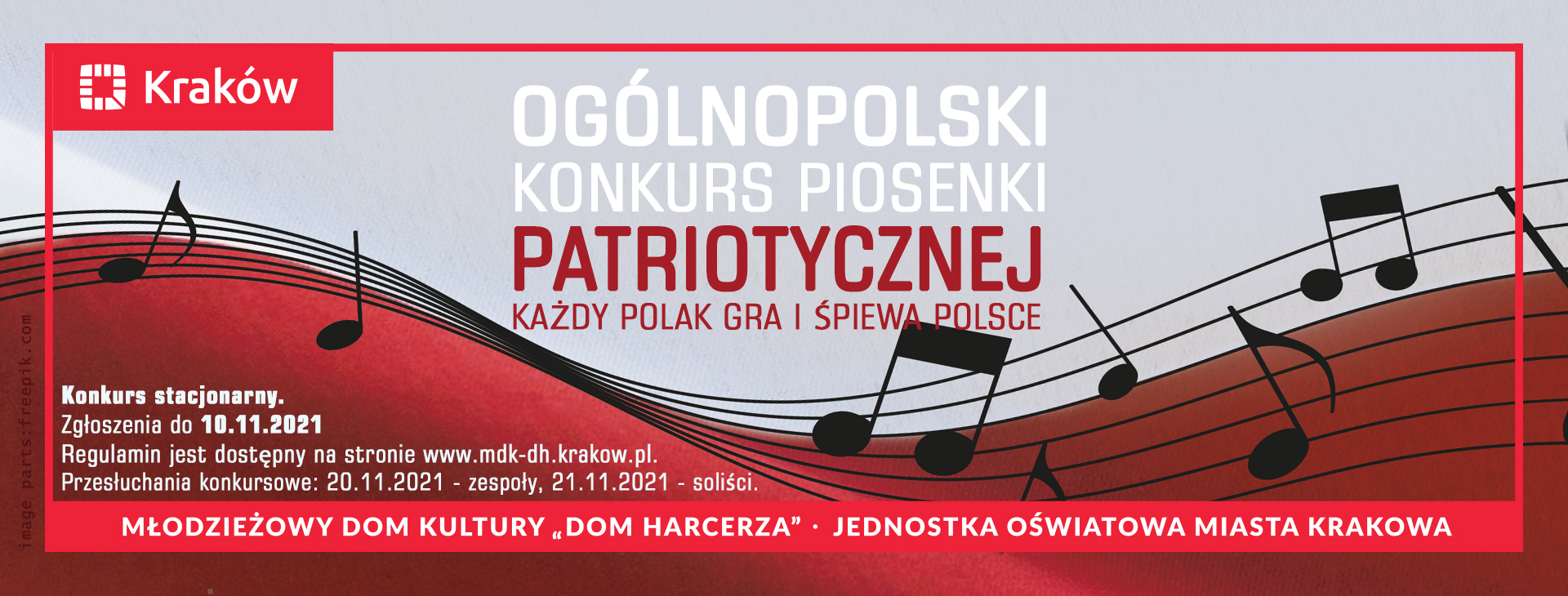 Ogólnopolski Konkurs „Każdy Polak gra i śpiewa Polsce” 2021 został zorganizowany w trybie stacjonarnym z zachowaniem wymaganego reżimu sanitarnego w dniach 20-21.11.2021. Organizatorem Konkursu był Młodzieżowy Dom Kultury „Dom Harcerza” oraz działające w nim Studio Piosenki „Debiuty” i Pracownia Emisji Głosu „Canzonetta”. Współorganizatorem wydarzenia była Rada i Zarząd Dzielnicy V Krowodrza. Patronat honorowy nad wydarzeniem objął Instytut Muzykologii Uniwersytetu Jagiellońskiego oraz Akademia Muzyczna im. Krzysztofa Pendereckiego w Krakowie. Patronami medialnymi zostało Polskie Centrum Informacji Muzycznej POLMIC oraz radio Plus. Sponsorem nagród w konkursie byli organizatorzy, współorganizator oraz firma Lwomik. Konkurs miał na celu pielęgnowanie kulturowego dziedzictwa, poszerzenie znajomości polskiej kultury muzycznej oraz kultywowanie tradycji wspólnego wykonywania polskich pieśni patriotycznych. Wydarzenie cieszyło się ogromnym zainteresowaniem. W konkursie wzięło udział 220 uczestników pod opieką 70 nauczycieli z 50 ośrodków zlokalizowanych między innymi w Krakowie, Myślenicach, Wiśniowej, Zielonkach, Piekarach, Limanowej, Ząbkach, Kielcach, Skomielnej-Białej, Ropczycach, Brzezinach, Skrzydlowie, Paszynie, Markach, Rzuchowej, Bilczy, Brzozowie, Knurowie, Tarnowie, Wadowicach, Mesznej, Trzcianie, Olkuszu, Chorzowie, Kobylance, Grodźcu, Rudnie Górnym, Proszowicach, Żębocinie, Sulmierzycach, Rybniku, Chojnowie, Gdyni i Warszawie. Uczestnicy rywalizowali w trzech grupach wiekowych: młodszej (6-8 lat), średniej (9-12 lat) oraz starszej (13-18 lat). W przypadku zespołów liczona była średnia wieku. Poziom artystyczny był niezwykle wysoki w związku z czym jury oraz organizatorzy przyznali w kategoriach soliści, zespoły wokalne i zespoły wokalno-instrumentalne w sumie 39 nagród i wyróżnień. W jury zasiadał Pan Zbigniew Żdżarski jako przewodniczący, Pan Karol Osman oraz Pan Piotr Grodecki (podczas przesłuchań dla zespołów) i Pani Joanna Knapik (podczas przesłuchań dla solistów). Całość przeglądu w roli konferansjera poprowadziła Pani Annika Mikołajko-Osman, która odpowiadała również za stronę organizacyjną wydarzenia. Przy konkursie jwspółpracowała również Pani Olga Odziemczyk.