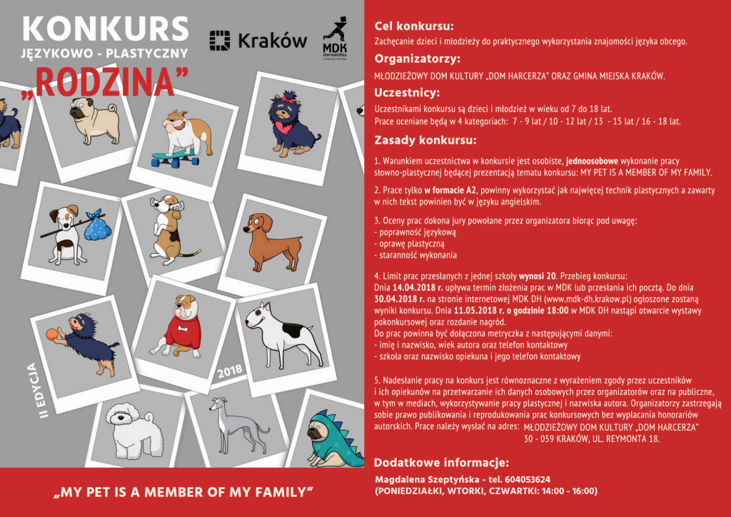 Konkurs językowo-plastyczny "My pet is a member of my family". Szczegółowe informacje w regulaminie konkursu.