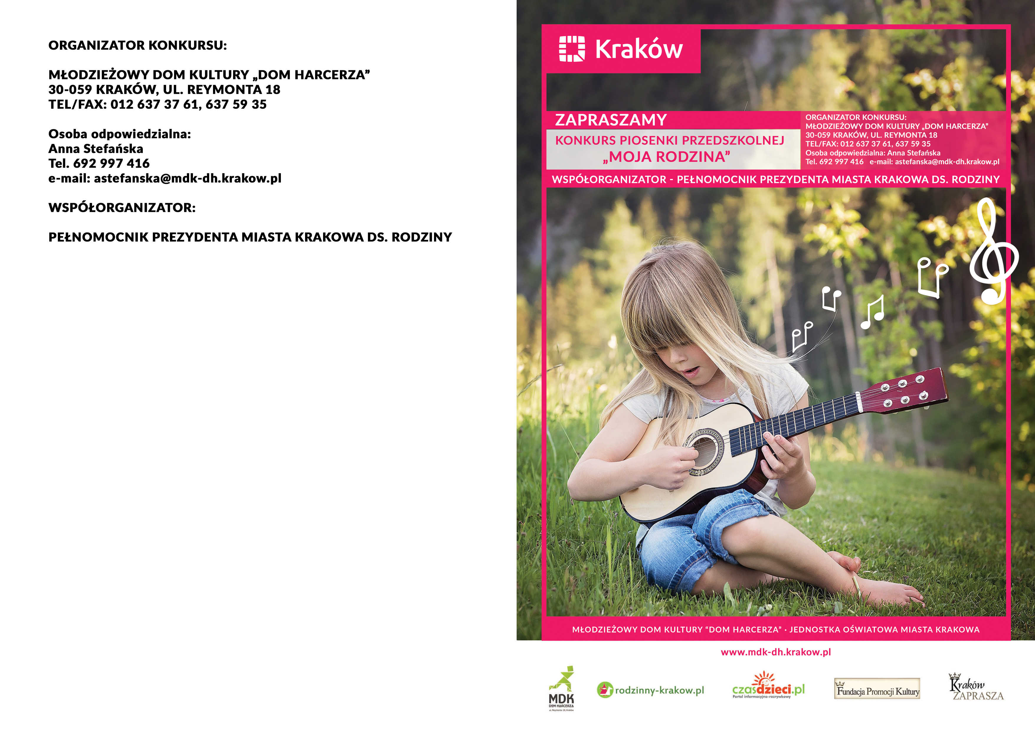 Konkurs piosenki przedszkolnej „Moja Rodzina". Szczegółowe informacje w załącznikach.