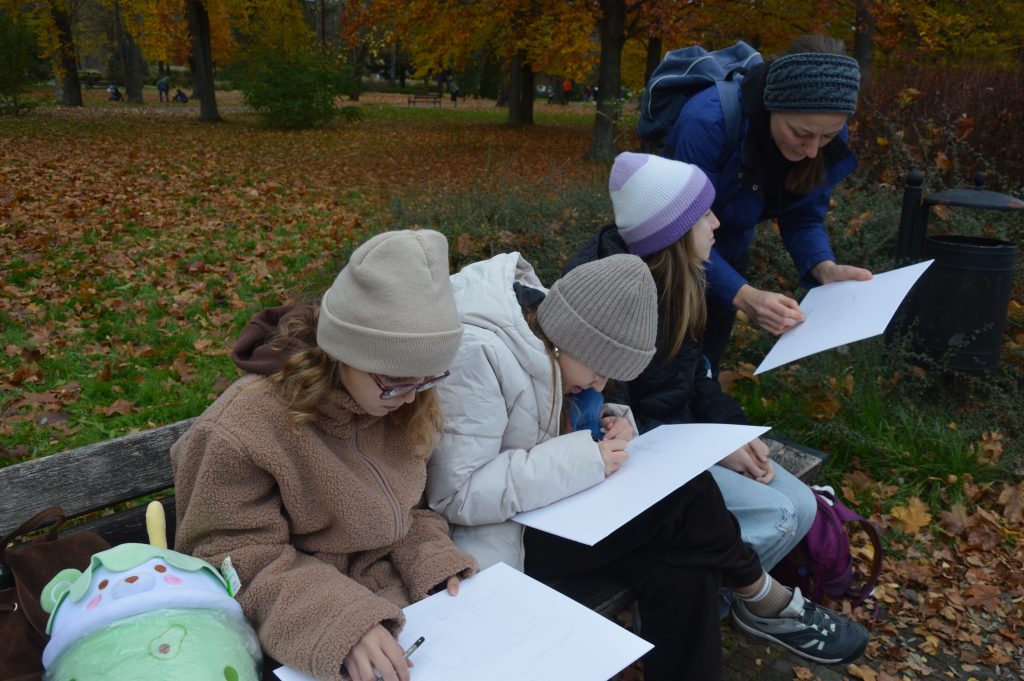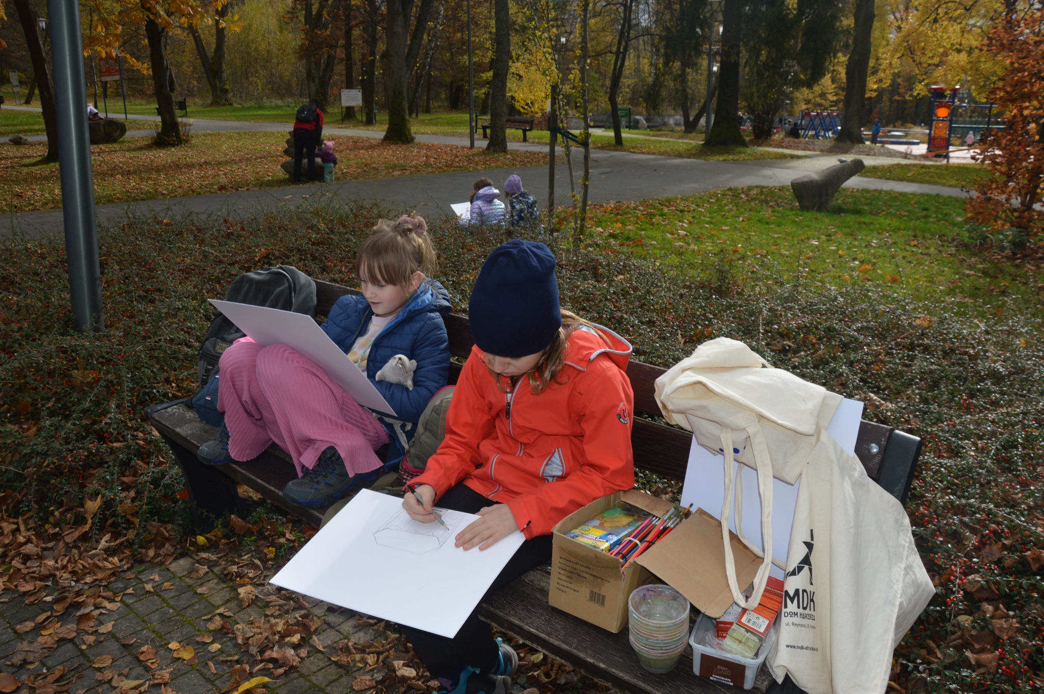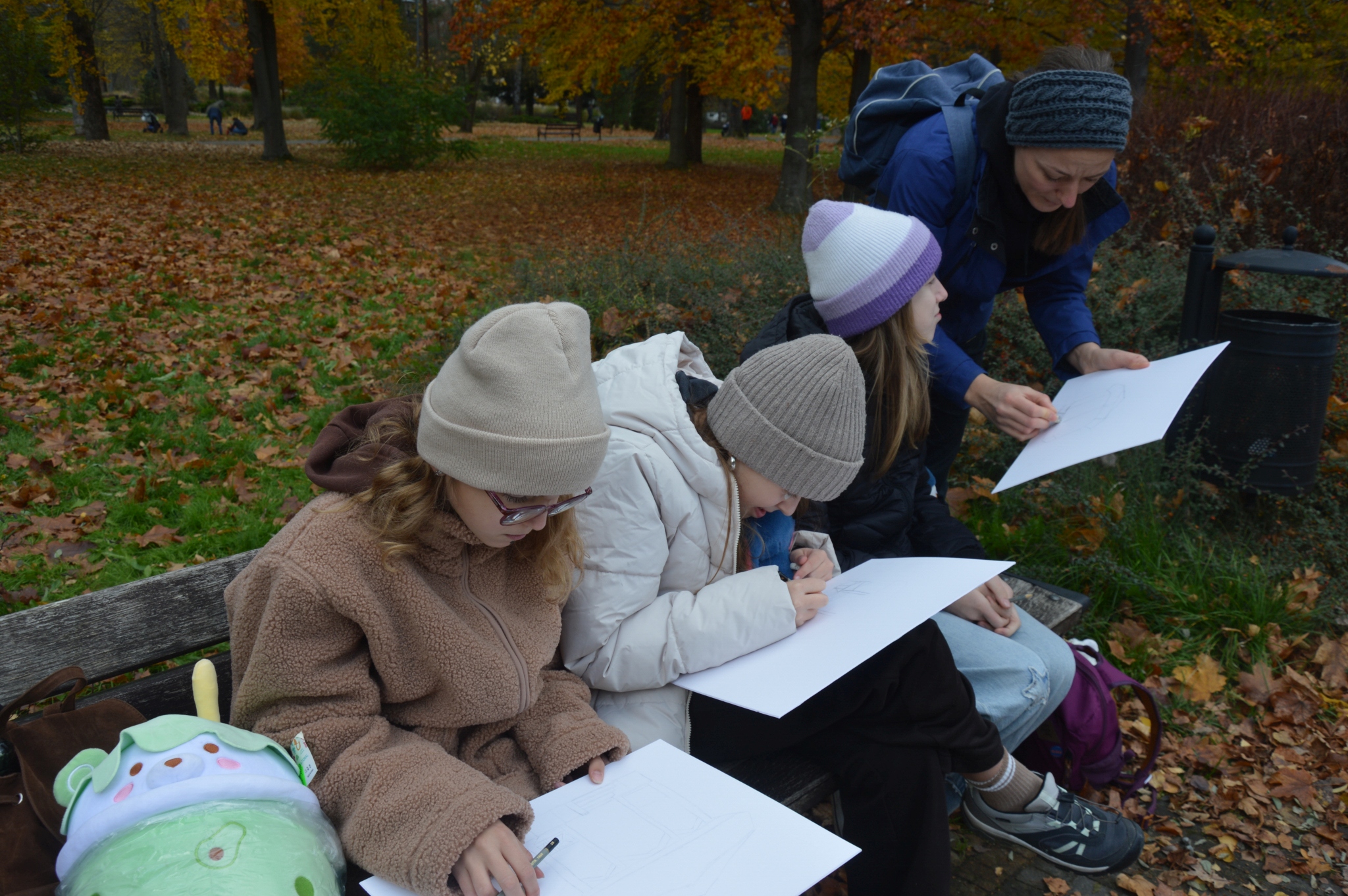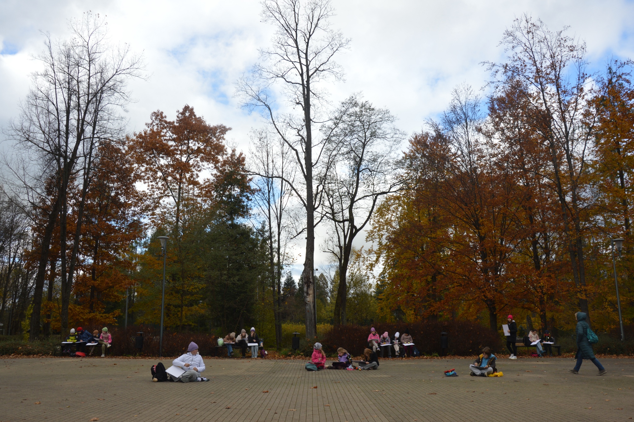 W niedzielę korzystając z pięknej aury, wybraliśmy się do parku na plener malarski „Barwy Jesieni ”, zakończony chwilą brykania na placu zabaw. A potem już tylko uroczyste zakończenie warsztatów z omówieniem powstałych prac plastycznych, rozdaniem uczestnikom dyplomików pamiątkowych, upominków i słodyczy. Pełni wrażeń w radosnych nastrojach powróciliśmy do Krakowa spowitego w szare deszczowe chmury. Chwilę przed naszym powrotem pod MDK ustał deszcz i zakończył się mecz na Wiśle. To się nazywa mieć szczęście!