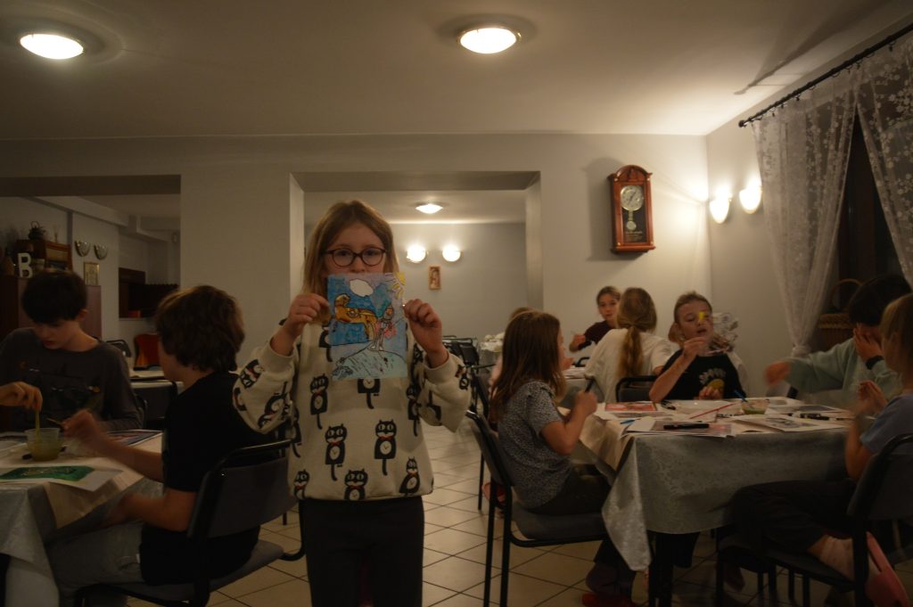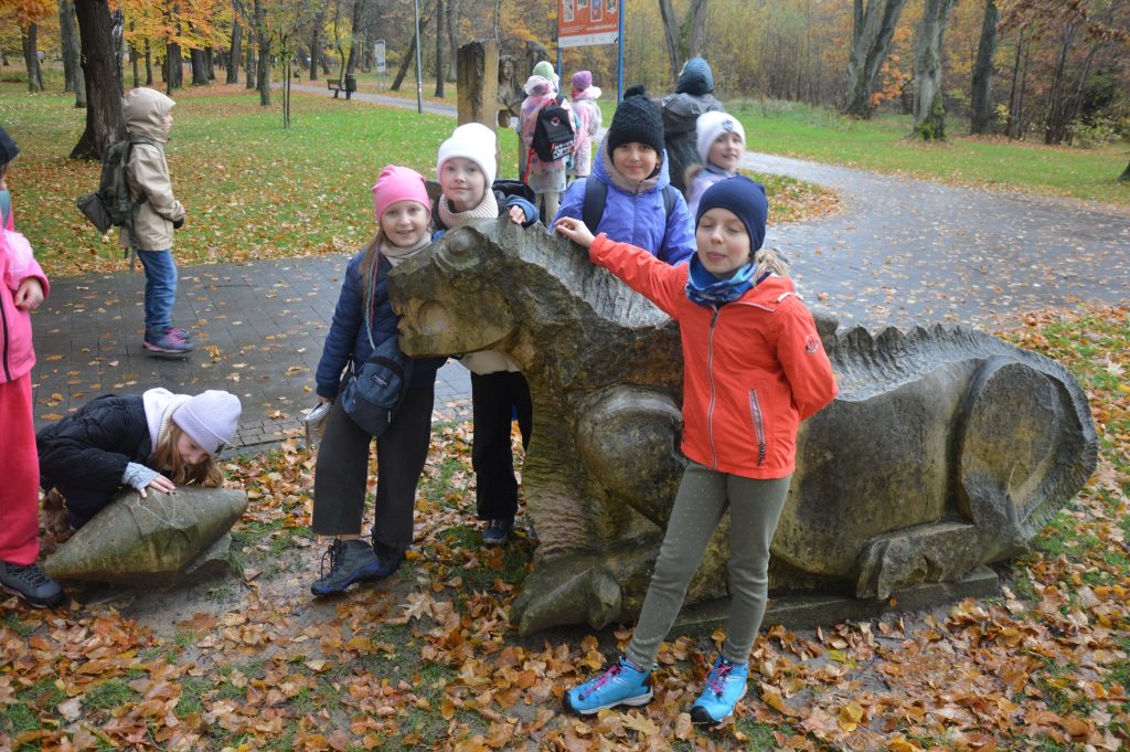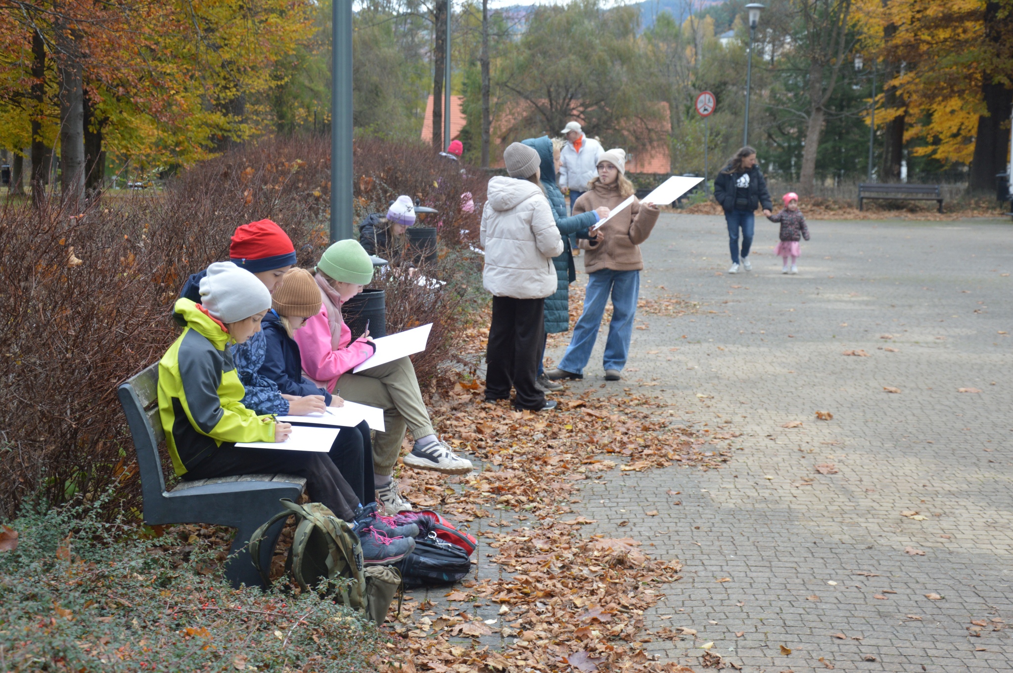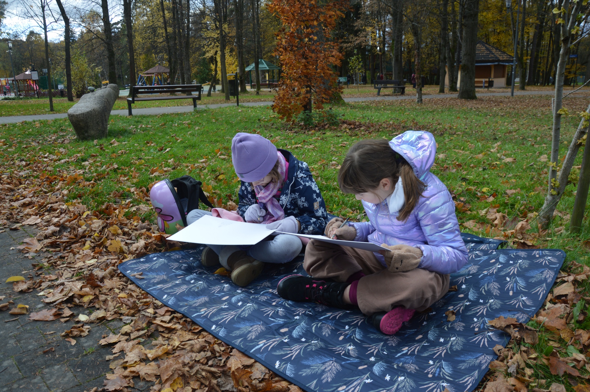 W niedzielę korzystając z pięknej aury, wybraliśmy się do parku na plener malarski „Barwy Jesieni ”, zakończony chwilą brykania na placu zabaw. A potem już tylko uroczyste zakończenie warsztatów z omówieniem powstałych prac plastycznych, rozdaniem uczestnikom dyplomików pamiątkowych, upominków i słodyczy. Pełni wrażeń w radosnych nastrojach powróciliśmy do Krakowa spowitego w szare deszczowe chmury. Chwilę przed naszym powrotem pod MDK ustał deszcz i zakończył się mecz na Wiśle. To się nazywa mieć szczęście!