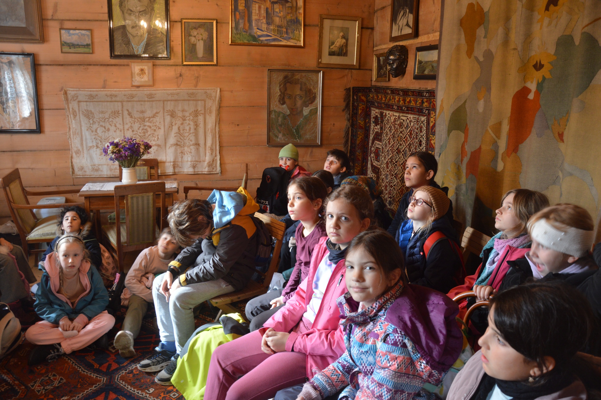 W sobotę pojechaliśmy autokarem do muzeum J. Kasprowicza na Harendzie na piękną prelekcję o Poecie, jego czasach i jego poezji. Zwiedziliśmy galerię Władysława Jarockiego, a drewniany kościółek położony w sąsiedztwie Muzeum stał się obiektem naszego pleneru rysunkowego. Po południu, w naszej zaaranżowanej naprędce pracowni w tradycyjnej technice malarstwa na szkle namalowaliśmy ilustracje do wiersza Jana Kasprowicza. „Św. Jerzy”. Dzień zakończyliśmy wieczorem filmowym.